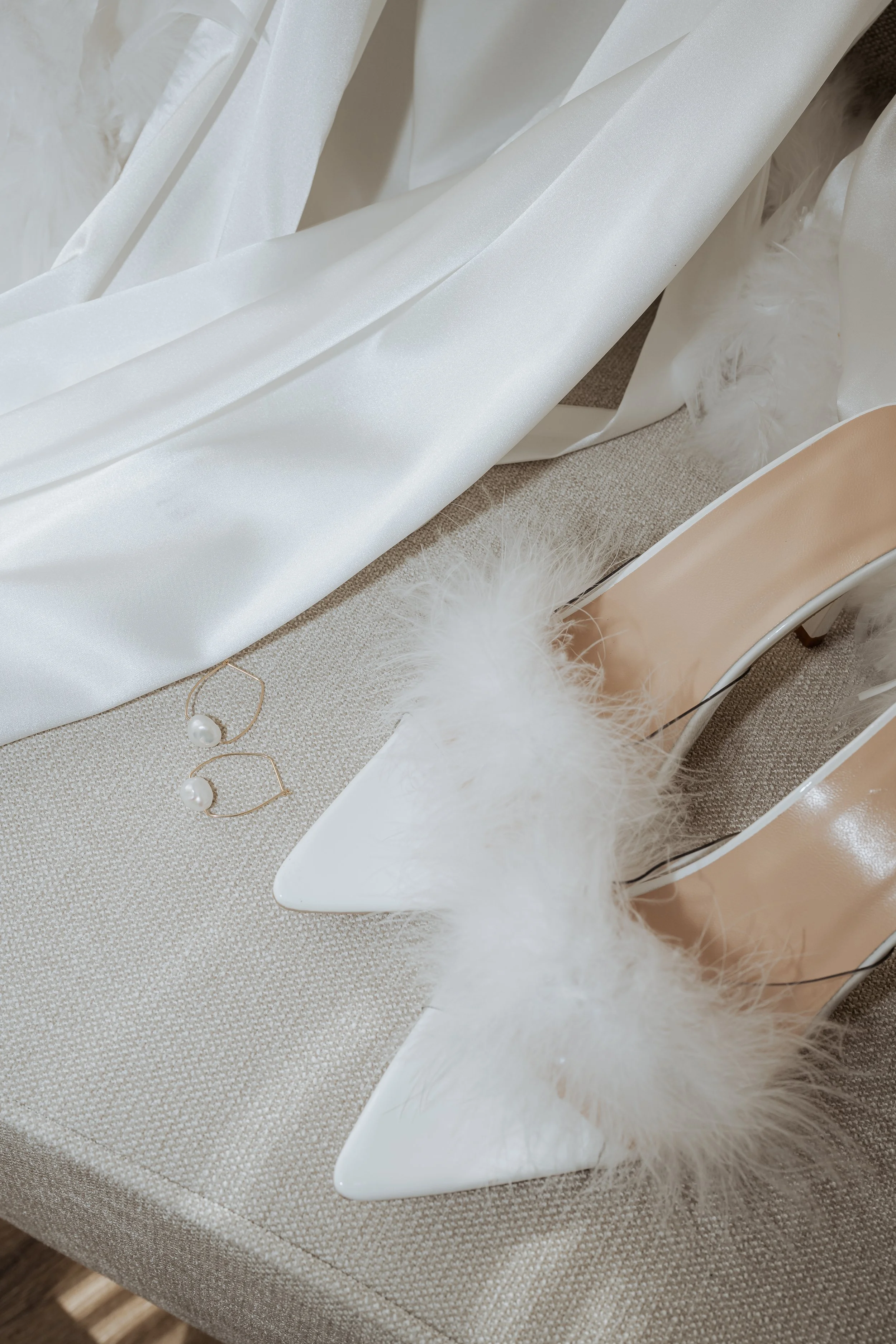 Finish off your bridal morning look with these absolutely adorable white feather mule slippers! A modest 4inch heel will elevate your look while still remaining comfortable.